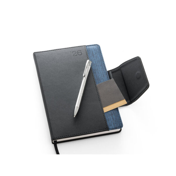 Agenda A5 em PU e tecido em poliéster.