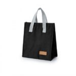 Bolsa térmica de rPET com capacidade de 4 litros com bolso frontal. Feita a partir de materiais recicláveis.