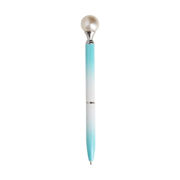 Caneta em metal com detalhe ornamental no formato de pérola.
