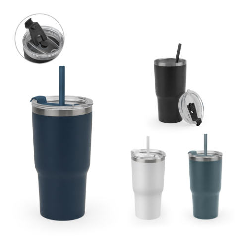 Composto por aço inox 91% reciclado, com parede dupla isolada a vácuo e acabamento mate.