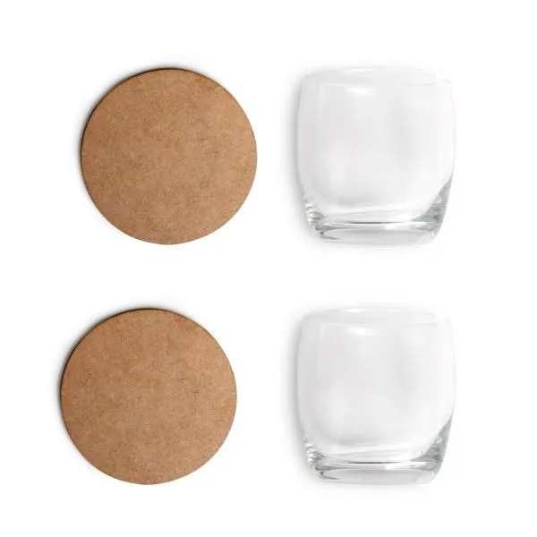 Kit contendo 2 copos para Whisky em vidro, dois porta copos em MDF (NÃO ACOMPANHA GARRAFA).