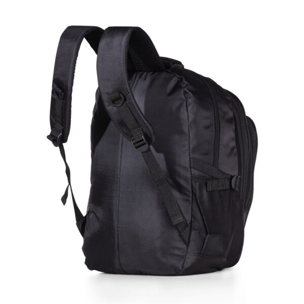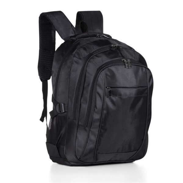 Mochila de nylon 31 litros com quatro compartimentos, sendo o principal com bolso para notebook 15,6.