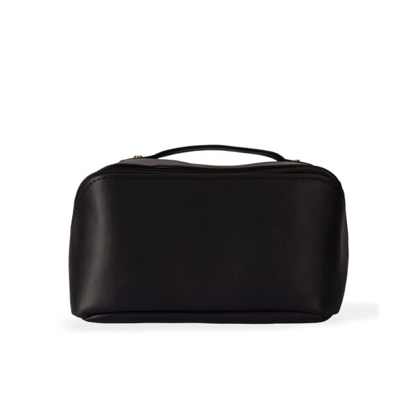 Este nécessaire confeccionado em poliuretano (PU) impermeável possui abertura em 180 graus que remete ao formato de uma concha.