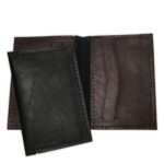 Porta documento Bidins em couro sintético, capa frente e verso lisa, parte interna com bolso de visor plástico e três divisórias no próprio couro com bolso lateral.