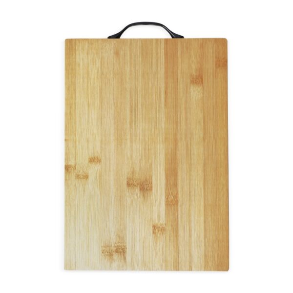 Tábua de corte com alça plástica.